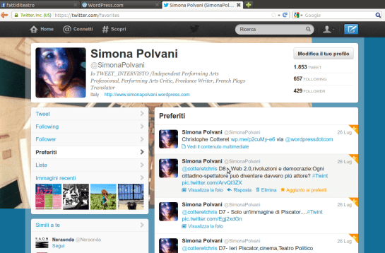 Pagina Twitter di Simona Polvani / IO TWEET_INTERVISTO