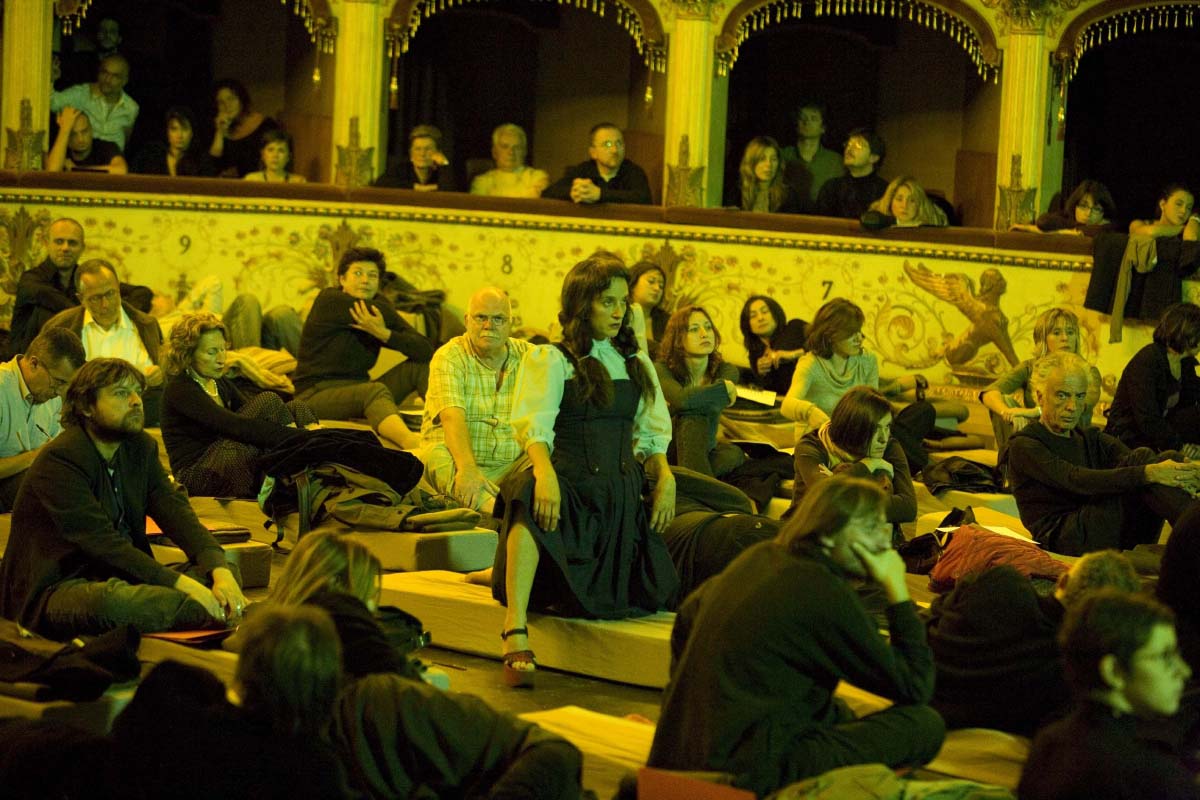 Teatro India, Short Theatre 2011, Roma. Assistiamo a T.E.L, spettacolo del Progetto Lawrence (2011-2013), realizzato in collaborazione con Tempo Reale. Esso prende spunto da alcune opere e dalla figura al contempo storica e leggendaria di Thomas Edward Lawrence, archeologo, agente segreto, ufficiale britannico, scrittore, meglio conosciuto come Lawrence d’Arabia, tra i capi della rivolta araba di inizio Novecento. Il Progetto, articolato in tre forme, T.E.L., il radiodramma 338171 TEL, e Rivolta nel deserto, spettacolo per 10 attori e 5 scrittori (debutto 2013), realizza un singolare e drammatico parallelismo tra l’ostinazione utopica di Lawrence e il suo fallimento e utopia e fallimento del teatro nella società contemporanea.