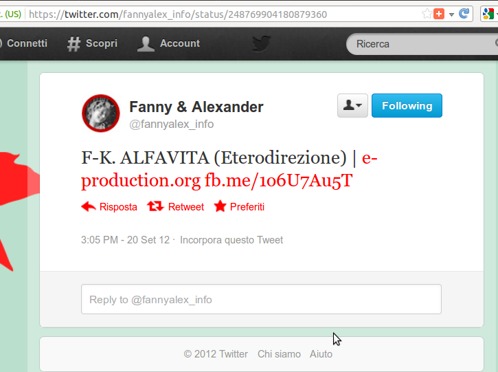 Schermata dalla pagina Twitter di Fanny & Alexander