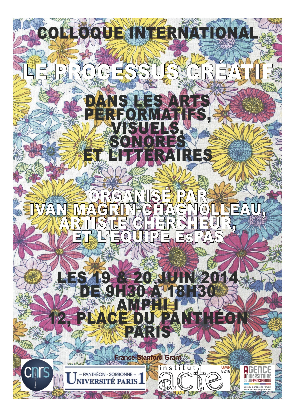Per maggiori informazioni sul programma del convegno:  http://www.institut-acte.cnrs.fr/espas/2014/06/11/colloque-le-processus-creatif/