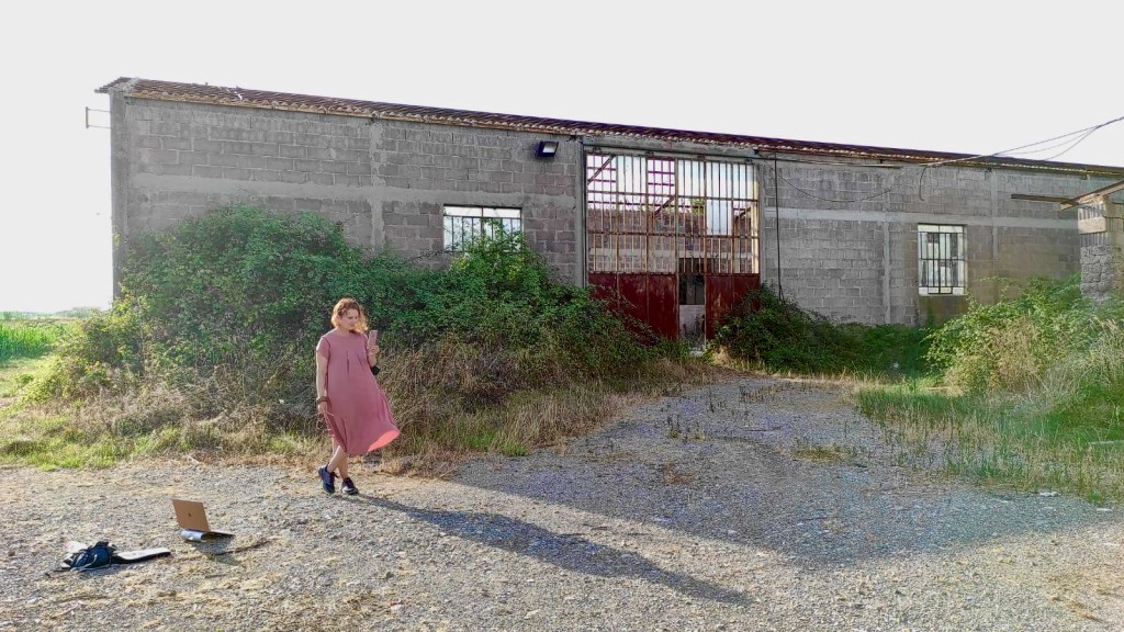 Connectée via mon iPhone /Zoom depuis la campagne de la contrade du Ronco, à Agliana, ma petite ville d’origine dans la plane de Pistoia (Toscane), et sollicitée par Franck j’ai pu parler de certains aspects de ma recherche en art et en performance et de ma création artistique, notamment poétique-et-visuelle, aspects qui me tiennent à coeur. L’environnement était partie prenante de cette rencontre: une nature d’une part cultivée, d’autre part in-domestiqué qui se tenaient côte à côte, une villa au lointain et tout près un vieux hangar des machines agricoles abandonné et en ruine.